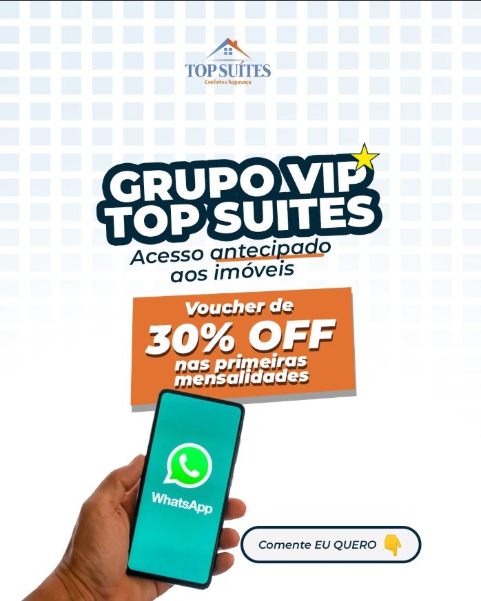 No Grupo VIP da Top Suites você recebe acesso antecipado às vagas antes do lançamento oficial. Isso significa mais opções, melhores escolhas e condições especiais.